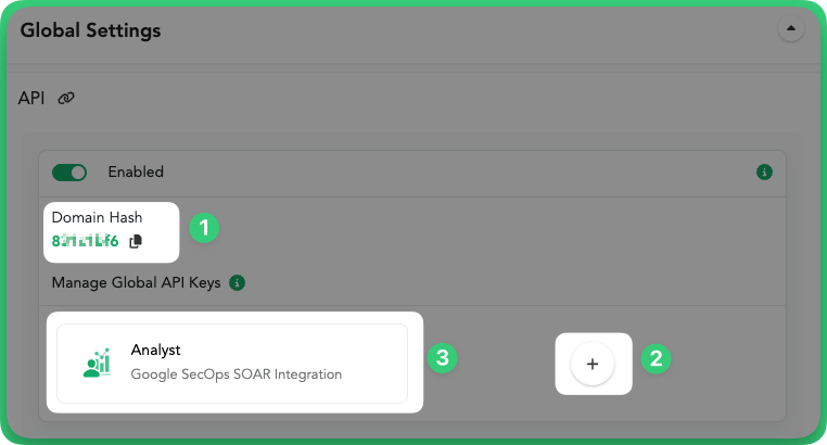 To configure the integration you need your Canary Console Hash, and an API key, with at least the Analyst permissions. Follow this guide to get your API configuration.