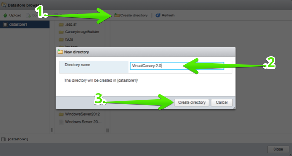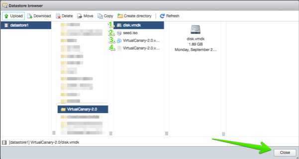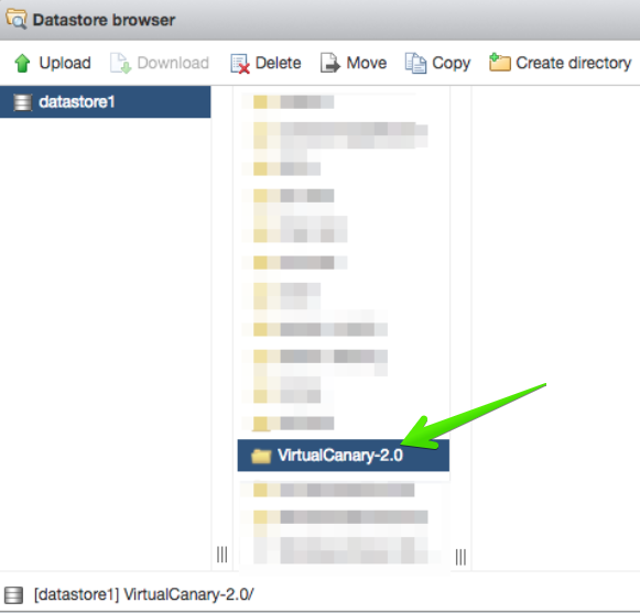 Select VirtualCanary-2.0 in the datastore browser, then click Upload.