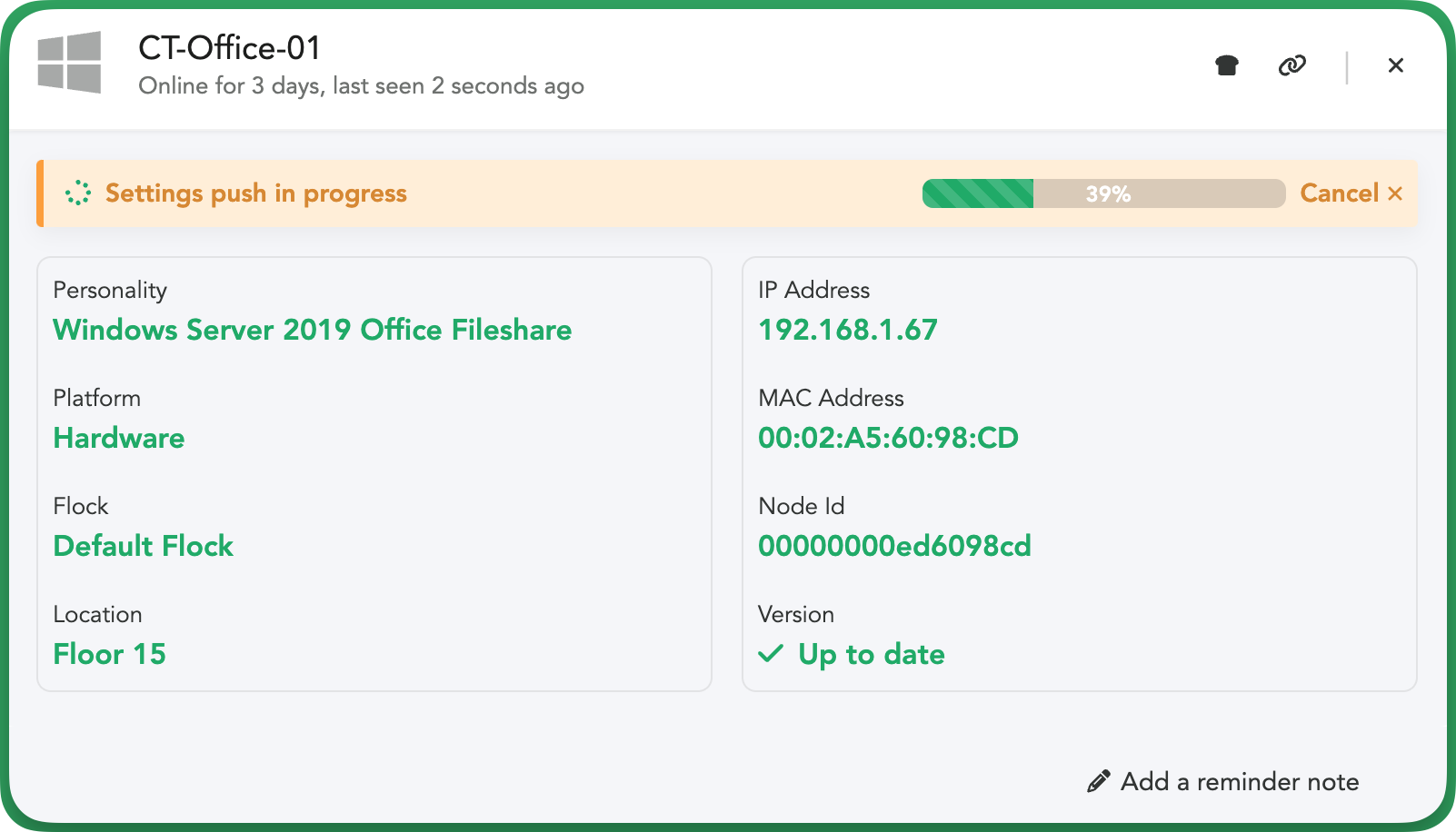 Your new configuration will be pushed down to your Canary. Once it gets to 100%, the Canary will then reboot and connect back to your Console with the new configuration.