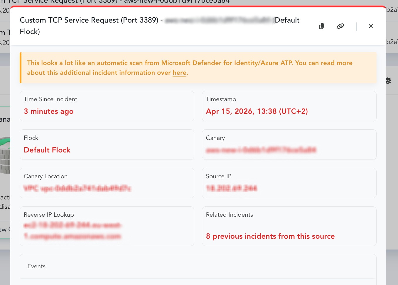 If you have seen this annotation, we have deduced that the activity detected by this Canary looks sufficiently like an Microsoft Defender for Identity scan. This does not mean that the event should be ignored. The scan is easy enough to mimic so could be used to mask actual malicious activity. We annotate it here as an attempt to add some context to why you might have seen it.