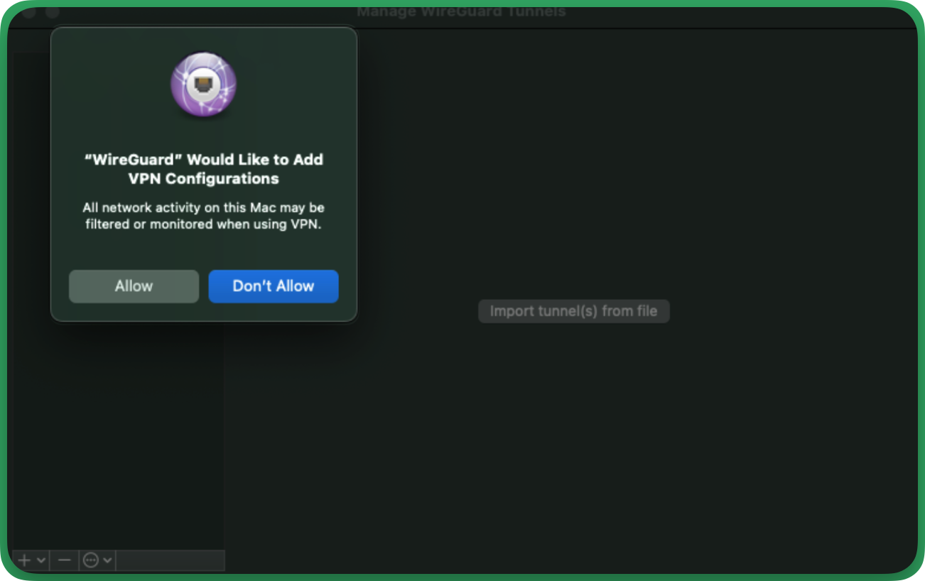 2. On the device you want to install the Token on, open the WireGuard application and click Import tunnel(s) from file.